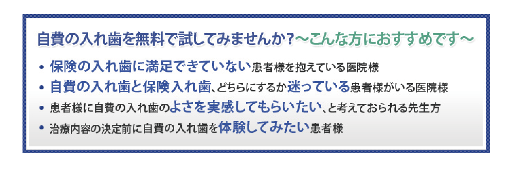 「自費の入れ歯の無料サンプルのお試し」をご提案しております。